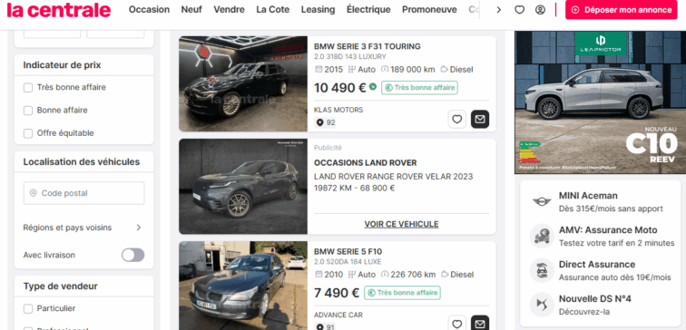 Diffusion des annonces en native ad dynamique au sein du listing selon des ciblages de navigation (marque, modèle, prix, etc).
